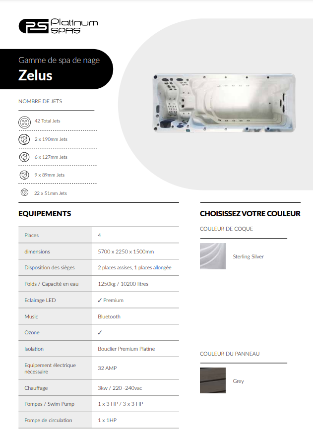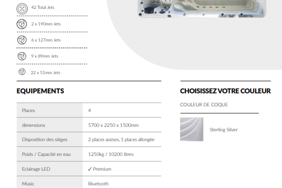 - 1 x 3HP (section spa) et 3 x 3HP (section nage) – LX Pumps, les pompes les plus avancées de l'industrie